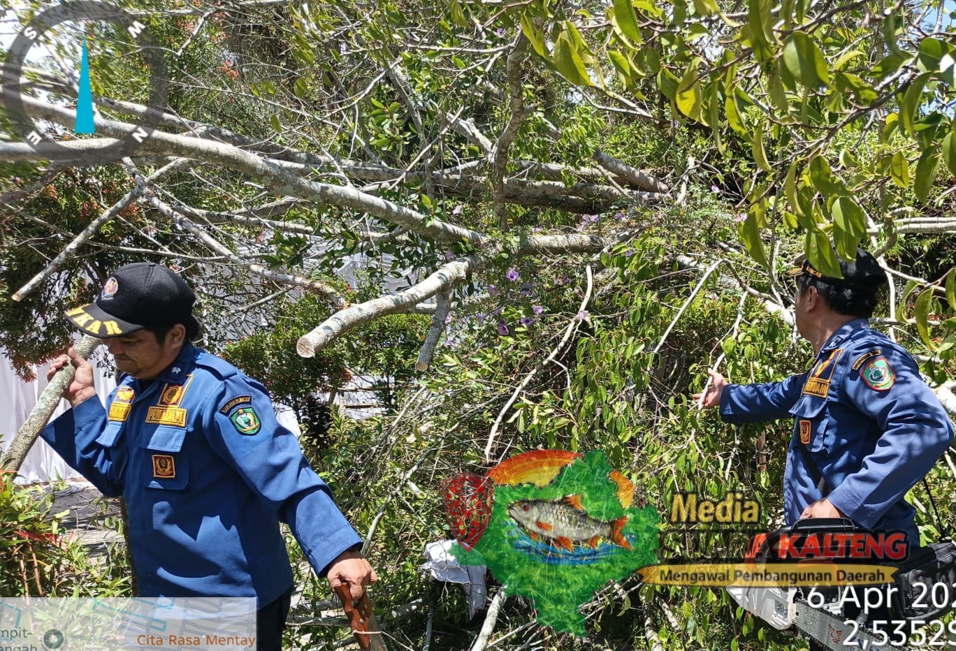 KOTIM, MEDIASUARAKALTENG.ID – Tim Pemadam Kebakaran dan Penyelamatan (Damkarmat) Kabupaten Kotawaringin Timur (Kotim) berhasil mengevakuasi pohon tumbang yang menimpa sebuah gazebo di kawasan Cafe Brenzeel, Jalan Perkutut 3, Kelurahan Baamang Hilir, Kecamatan Baamang, Senin (6/4/2026).