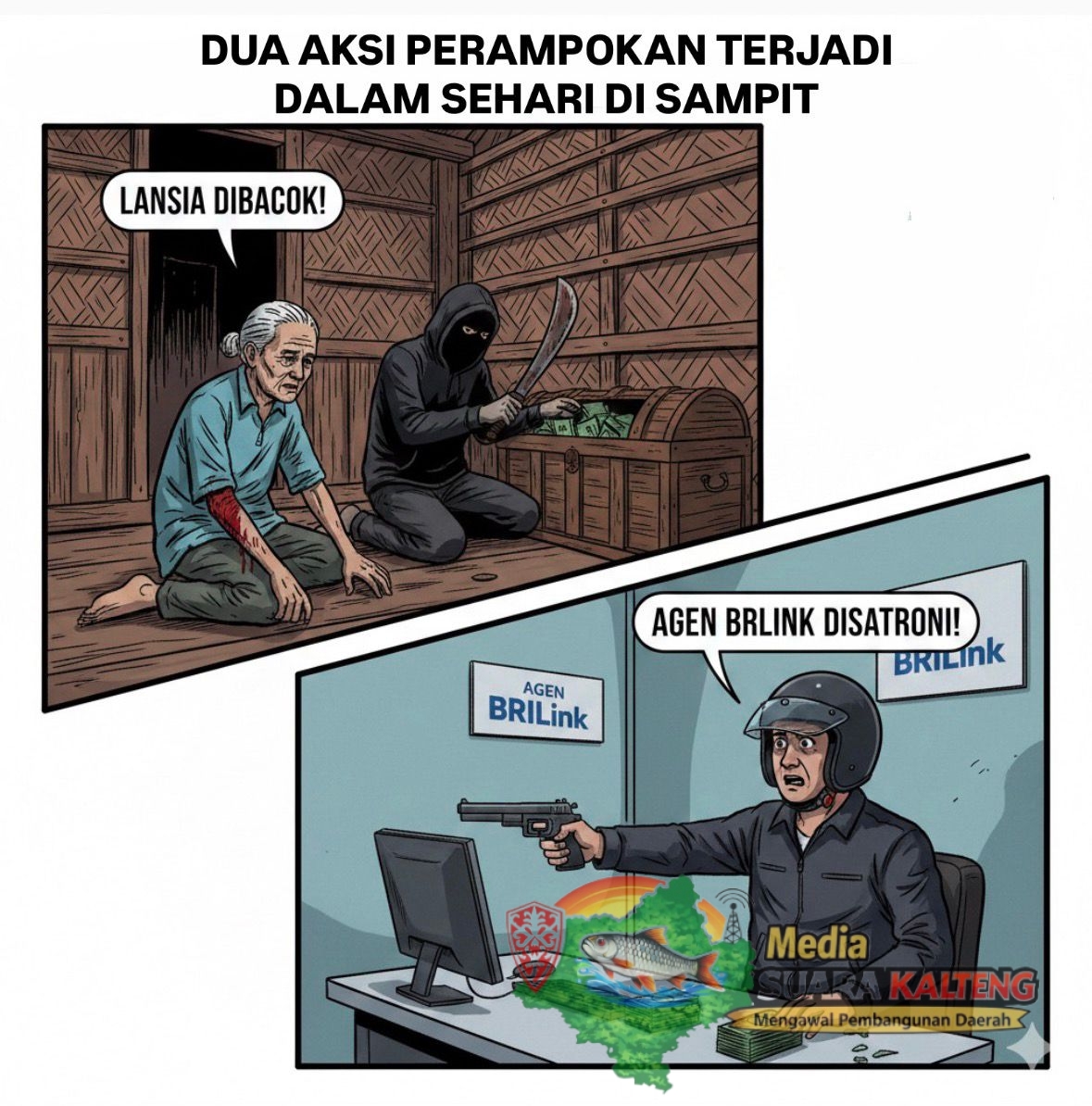 KOTIM, MEDIASUARAKALTENG.ID – Dalam satu hari, Jumat (20/2/2026), terjadi dua tindak kejahatan perampokan di Kota Sampit, Kabupaten Kotawaringin Timur (Kotim), Kalimantan Tengah. Dua peristiwa tersebut terjadi pada waktu dan lokasi berbeda, menyebabkan satu korban luka serius dan kerugian uang tunai jutaan rupiah.