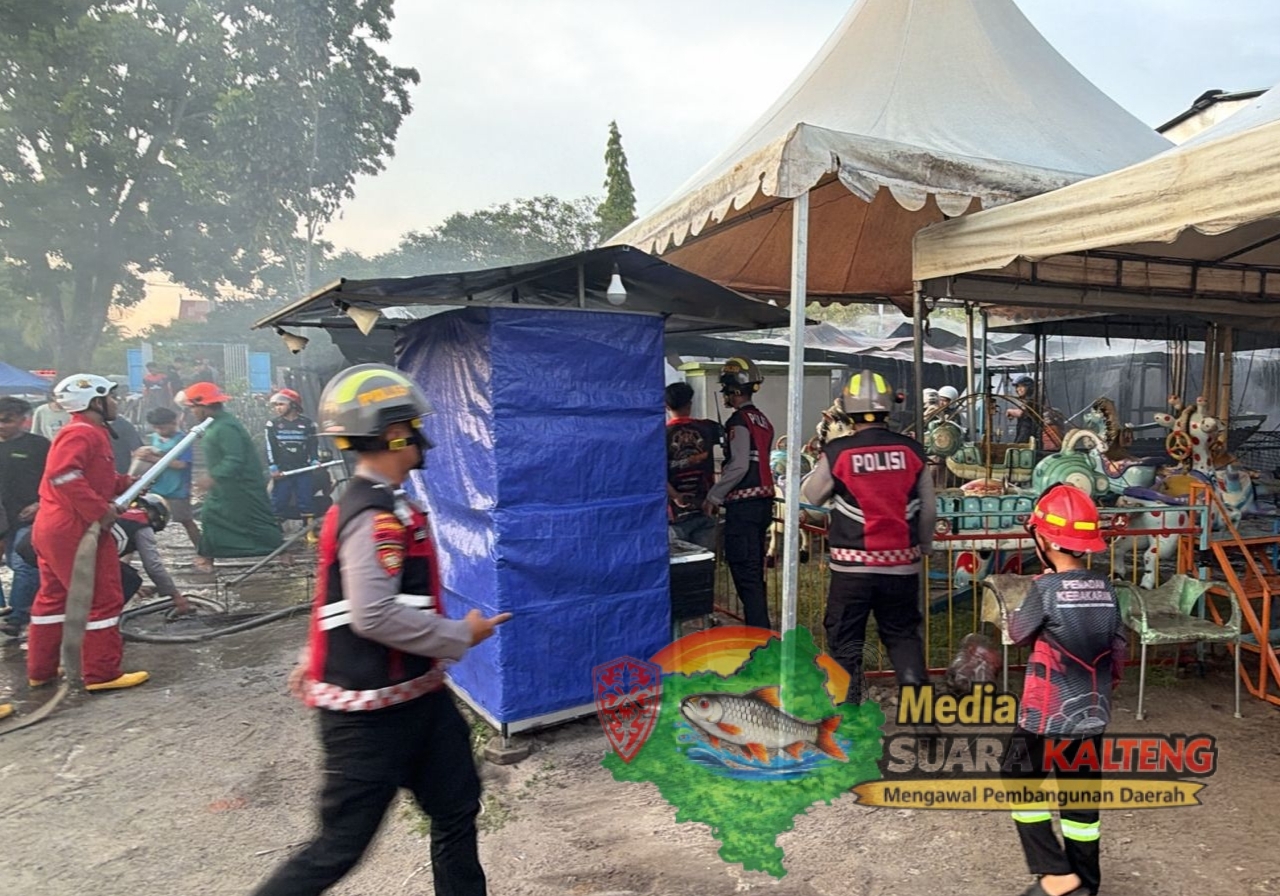 PALANGKA RAYA, MEDIASUARAKALTENG.ID – Kebakaran melanda area taman bermain Puja Sera di Jalan Yos Sudarso, Kelurahan Menteng, Kecamatan Jekan Raya, Kota Palangka Raya, Kalimantan Tengah, Sabtu (14/3/2026) sekitar pukul 17.02 WIB. Peristiwa tersebut menghanguskan tiga warung makan dan satu warung yang menjual mainan anak-anak.
