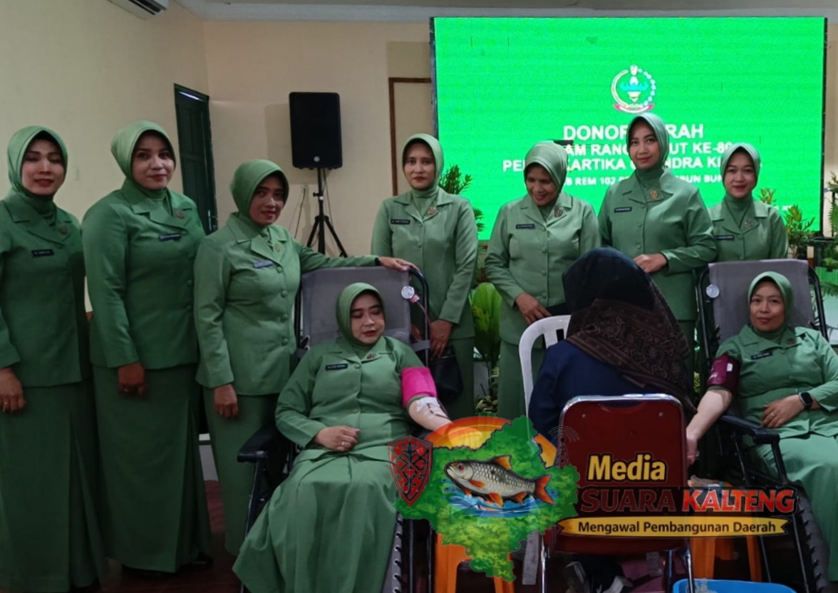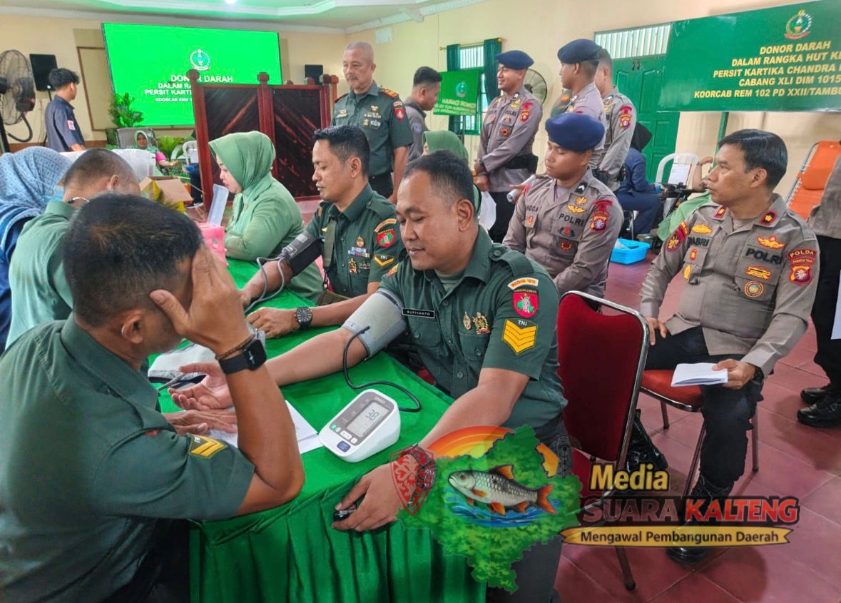 KOTIM, MEDIASUARAKALTENG.ID – Korem 102/Panju Panjung bersama Kodim 1015/Sampit menggelar kegiatan bakti sosial donor darah dalam rangka menyambut Hari Ulang Tahun (HUT) Persatuan Istri Prajurit (Persit) Kartika Chandra Kirana ke-80 tahun 2026..Kegiatan tersebut dilaksanakan di Aula Jenderal Sudirman Makorem 102/Pjg, Selasa (3/1/2026).