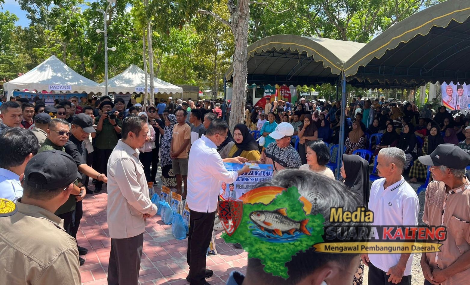 Selain pasar murah, kegiatan tersebut juga dirangkai dengan sejumlah layanan kepada masyarakat, seperti pemeriksaan kesehatan gratis, penyaluran bantuan pangan dari pemerintah provinsi, pembagian Kartu Huma Betang Sejahtera, serta pasar pangan murah.
