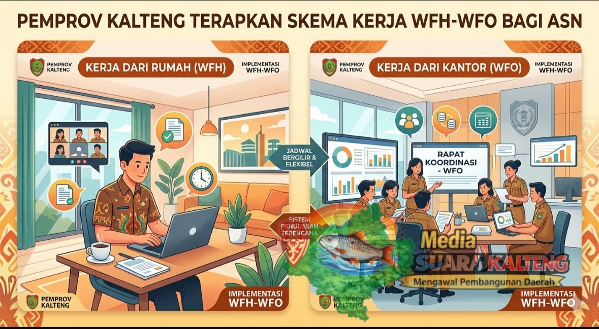 PALANGKA RAYA, MEDIASUARAKALTENG.ID – Pemerintah Provinsi Kalimantan Tengah resmi menerapkan pengaturan kerja kombinasi Work From Home (WFH) dan Work From Office (WFO) bagi Aparatur Sipil Negara (ASN).