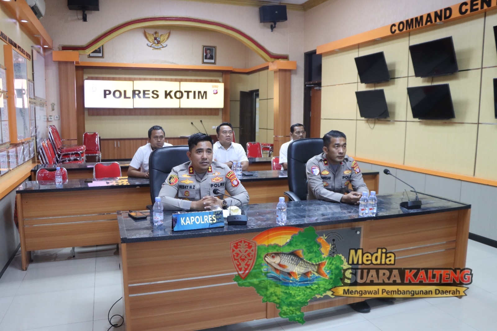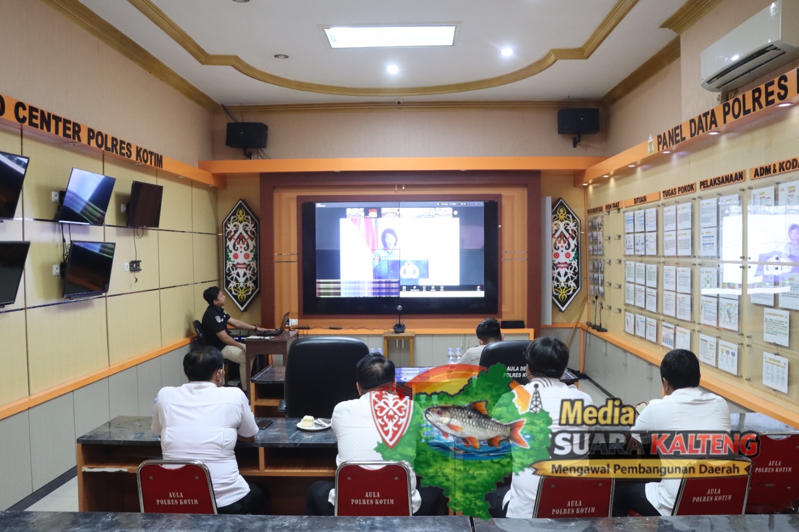 Kapolres Kotim, AKBP Resky Maulana Zulkarnain, S.H., S.I.K., M.H., didampingi Wakapolres Kotim, Kompol Christian Maruli Tua Siregar, S.I.K., M.M., memimpin kegiatan Zoom Meeting diaula loby Polres Kotim dan dihadiri oleh Kasat Reskrim/KBO Reskrim, Kasat Narkoba, dan Kasikum Polres Kotim.